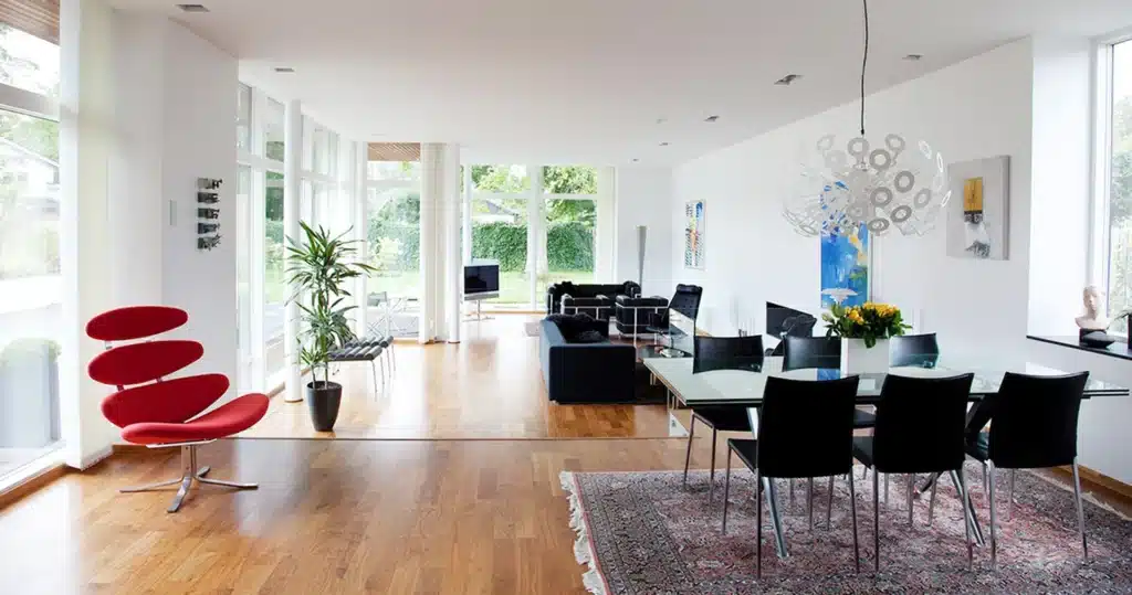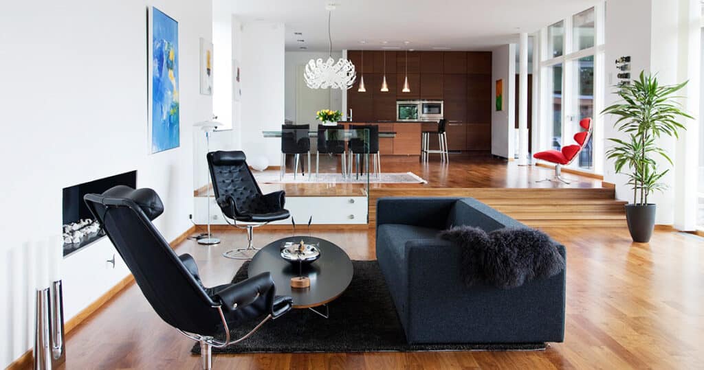 Moderní dům Willa Nordic, je strohý a moderní objekt s výhledem do ulice. V zadní části domu se otevírá nádvoří s mezinárodním nádechem. Velká prosklená okna propojují světlo a přírodu se stylovým interiérem. Vnitřní a venkovní prostory splývají do celku, který vytvořil architekt Michael Wikeborg. V celém objektu je použit ořech Philadelphia.