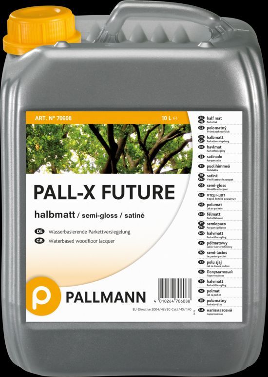 Pall-X Future je vrchní polomatný jednosložkový parketový lak na vodní bázi