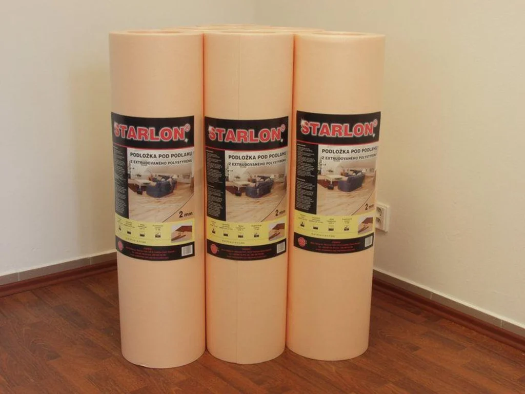 Termoakustická izoalční podložka z extrudovaného polystyrenu určená pod plovoucí dřevěné podlahy.